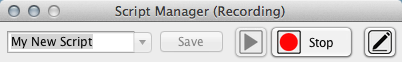 Next go back to the Script Manager and press Stop. Enter "My First Script" inside the script name box, then press Save.